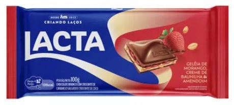 CHOCOLATE GELEIA MORANGO BAUNILHA E AMENDOIM 100G LACTA